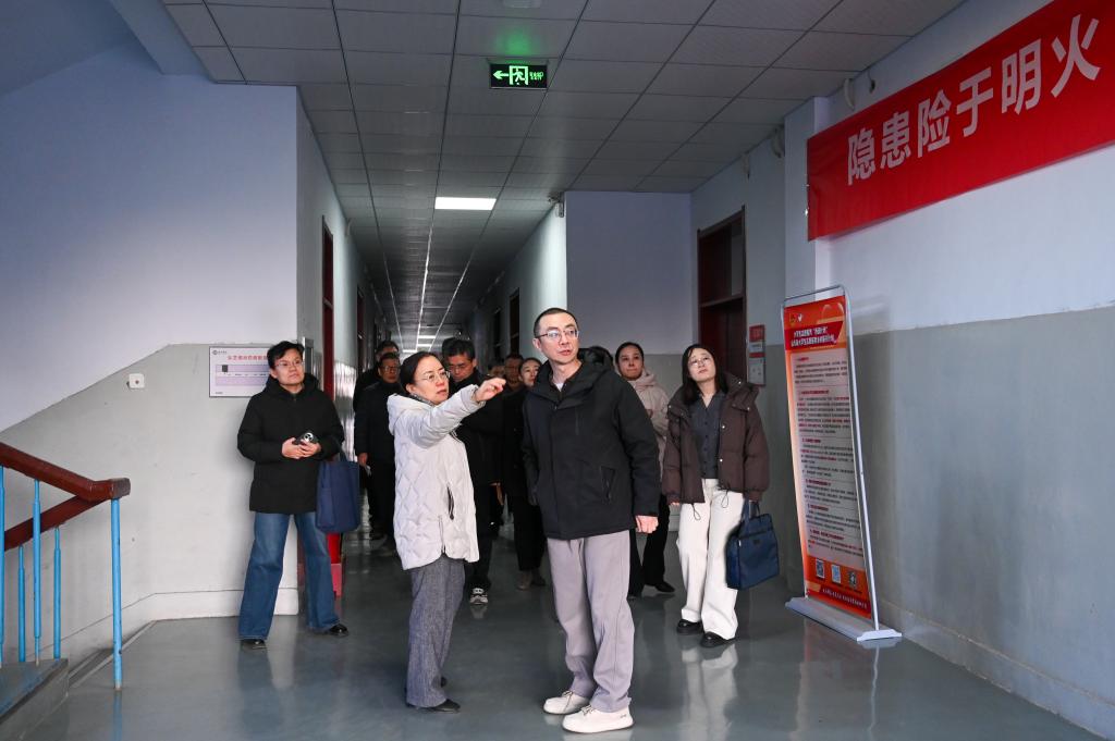 徐静一行依次走访查看了美术学院的办公楼、教室、画室、实验室等关键场所设施。每到一处,徐静都深入了解学院各项准备工作的落实情况,并围绕环境建设、氛围营造、学习宣传等重点内容提出指导意见。针对现场发现的问题,当场给出具体整改建议,确保各项筹备工作精准高效推进。